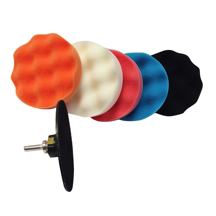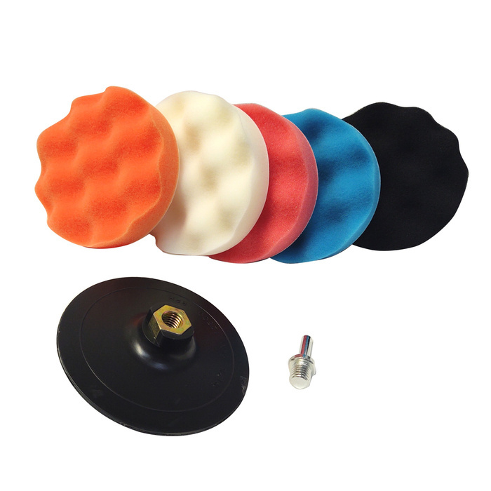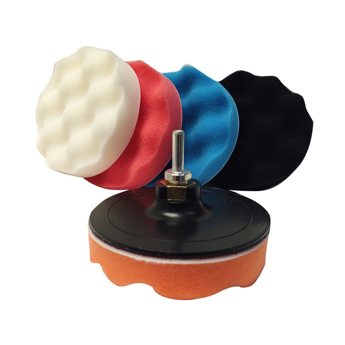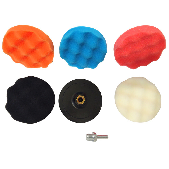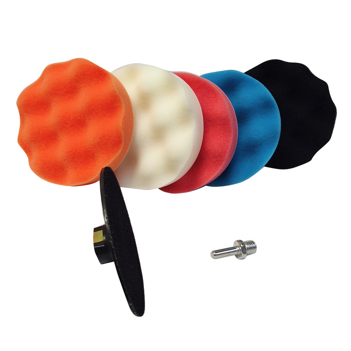 Zestaw gąbek polerskich tarcze 125 125x45 biala czarna pomarańczowa czerwona niebieska falowana / karbowana gąbka + dysk twardy