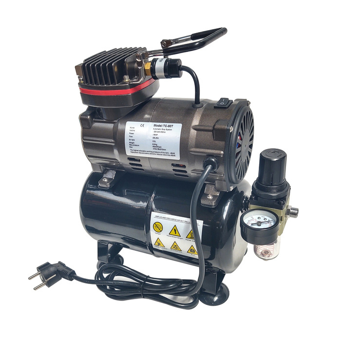 Kompresor z butlą do aerografu TC-80T Sprężarka z reduktorem bezolejowy cichy kompresor filtr Magma