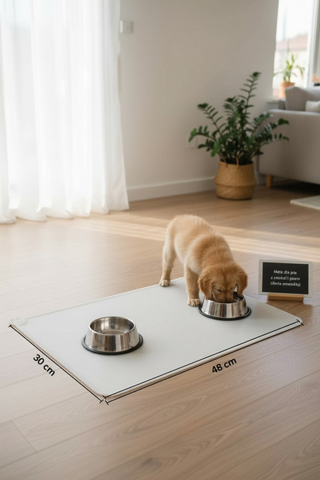 Maty pod miski są wodoodporne i oraz łatwo oczyścić wodą lub mokrą szmatką.