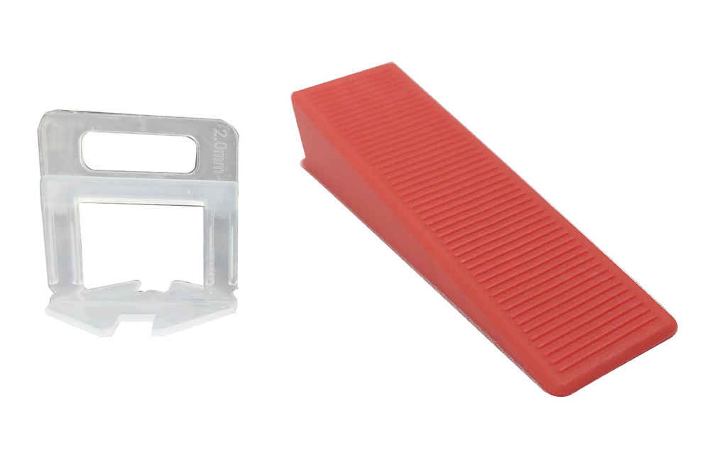 Zestaw system poziomowania płytek 030254NB klipsy 2 mm 300 szt + system poziomowania płytek 030253NB kliny 100 szt
