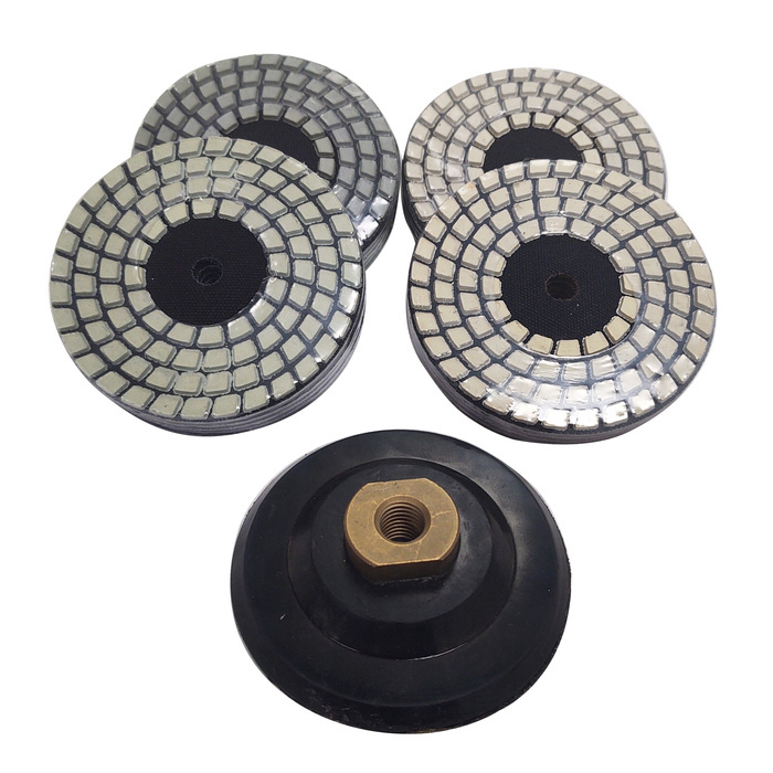 Zestaw 4 Tarcz diamentowa rzepik na sucho 100 mm TPP400 czterostopniowy Q1 Q2 F3 F4 szlifowania gres gresu kamień granit marmur poler polerowania polerska fazowania + dysk 100 wzmocniony rzep
