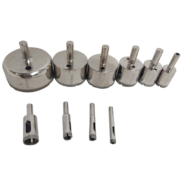 Zestaw otwornic diamentowych otwornice diamentowe 10el. 6mm, 8mm, 10mm, 16mm, 20mm 28mm, 35mm, 45mm, 50mm, 68mm zintegrowany stalowy korpus profesjonalny zestaw zdjęcie nr 4