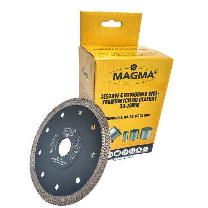 Zestaw otwornic wolframowych 4 elementowy + tarcza diamentowa do cięcia 125x1,4mm turbo ceramika, beton Magma MYT marki Magma.
