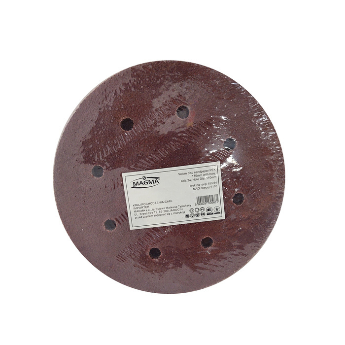 Krążki na rzep papier ścierny PEX 100 sztuk fi 180mm z otworami granulacja 24 otwory 110 mm marki Magma.