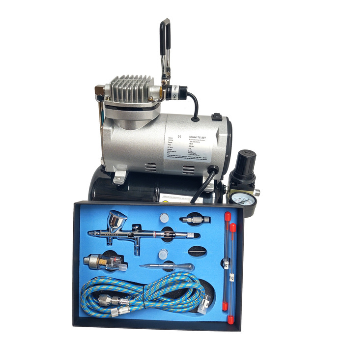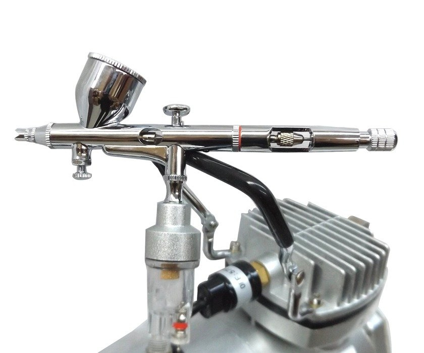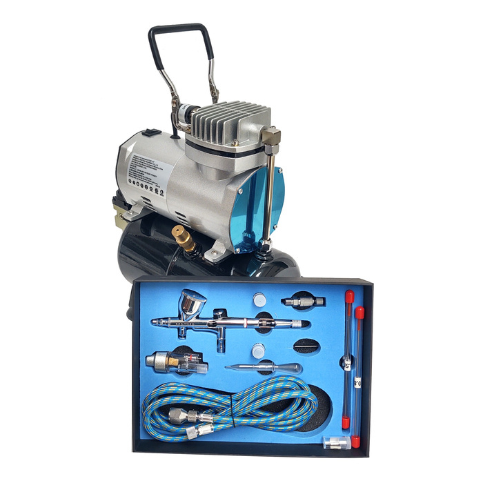 - kompresor z butlą 3L wraz z aerografem AB-180K z dyszą 0,2, 0,3, 0,5, 0,8mm