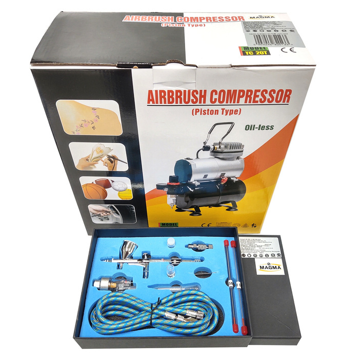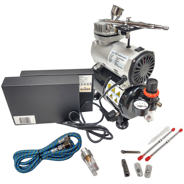Zestaw malarski kompresor z butlą 3L z aerografem AB-180K 4 dysze marki Magma.