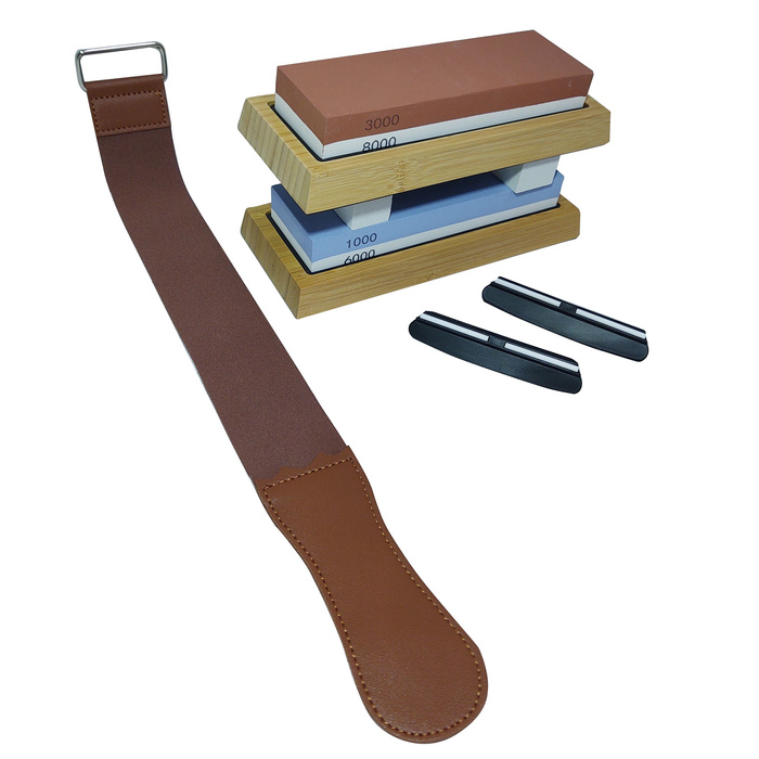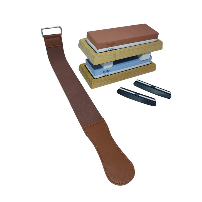 Osełka dwustronna do noży kamień szlifierski ostrzenia ostrzałka 3000/8000 + osełka dwustronna do noży kamień szlifierski ostrzenia ostrzałka 6000/1000 + pasek skórzany skóra ekologiczna ostrzenia wygładzania