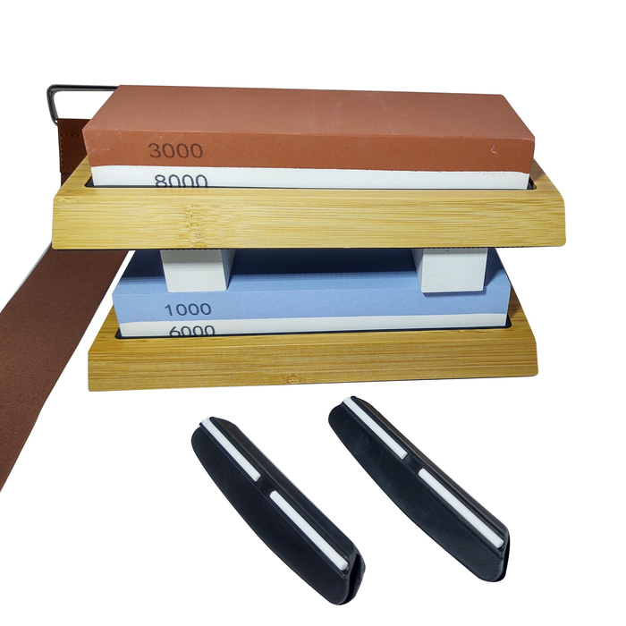 Osełka dwustronna do noży kamień szlifierski ostrzenia ostrzałka 3000/8000 + osełka dwustronna do noży kamień szlifierski ostrzenia ostrzałka 6000/1000 + pasek skórzany skóra ekologiczna ostrzenia wygładzania zdjęcie nr 4