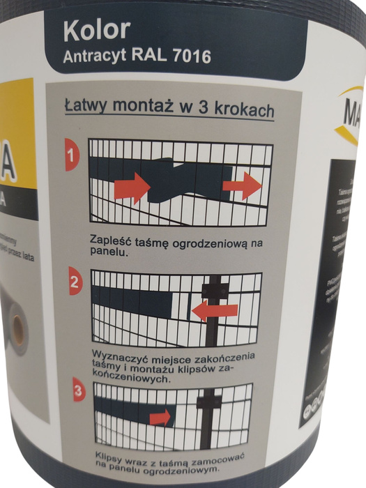 Taśma ogrodzeniowa antracyt 19x50 osłona na plot ogrodzenie panelowe grafit + 30 klips marki Magma.
