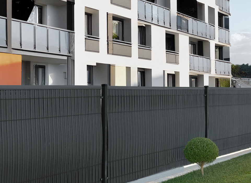 Osłona w postaci listew z tworzywa sztucznego wsuwanych w ogrodzenie panelowe do samodzielnego montażu. Po zamontowaniu tworzy wygodną, trwałą i estetyczną osłonę. Cechuje się wysoką odpornością na warunki atmosferyczne przez cały rok – osłoni od wzroku, wyciszy i zapewni prywatność. Listwy wykonujemy w dwóch szerokościach.
