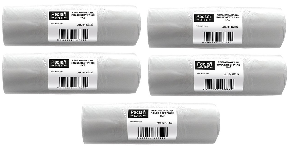 5 x rolki 600 sztuk Paclan Expert reklamówka reklamówki na rolce jednorazówka zrywki 5 kg 6,7 mic rolka