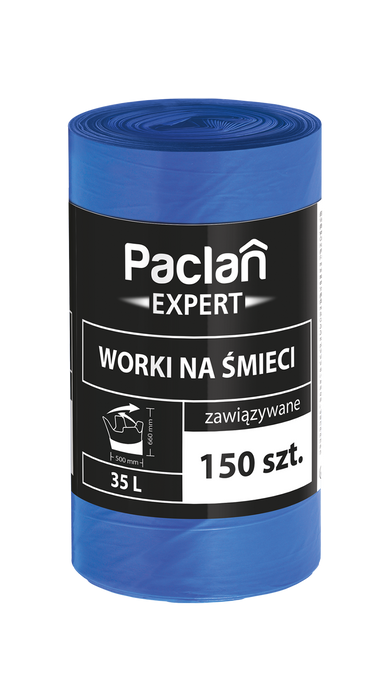 Worki na śmieci 35l 600 szt Paclan Expert zawiązywane mocne nie pękające 4 rolki