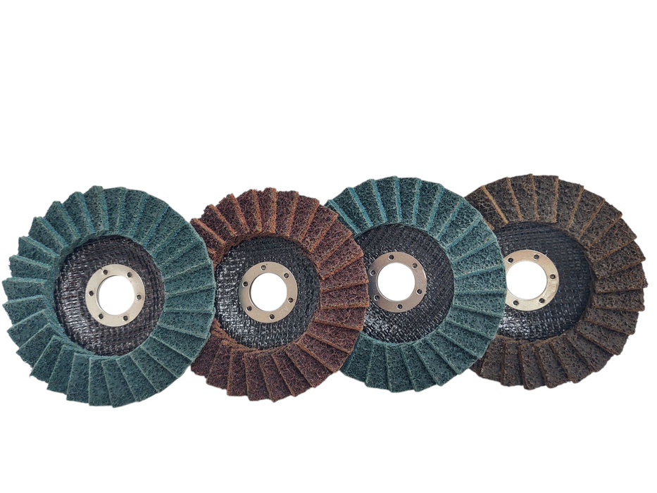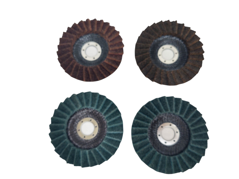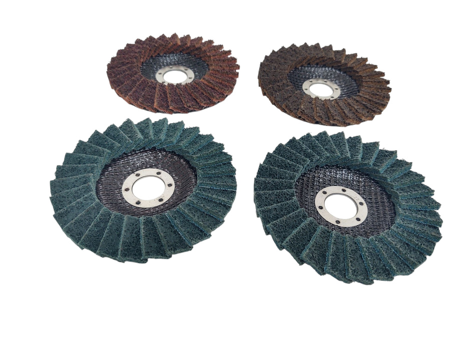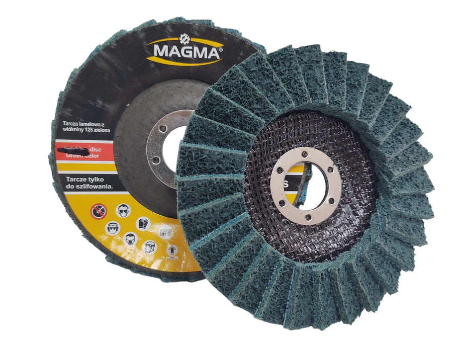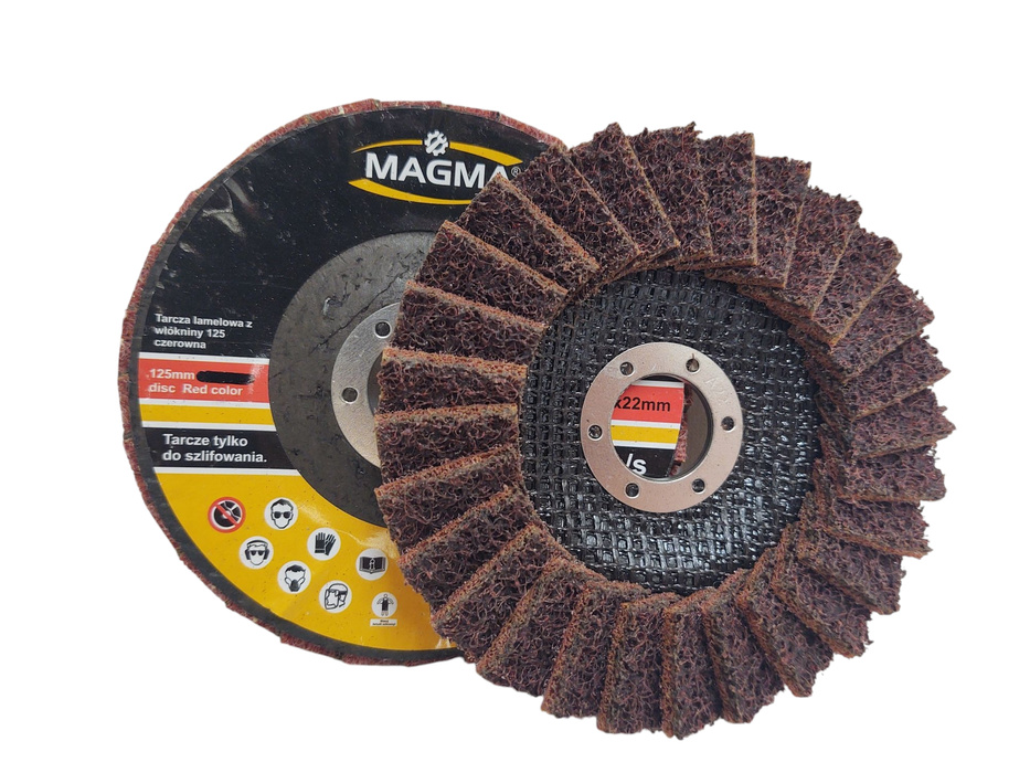 Zestaw 4 sztuk tarcz lamelowa z włókniny 125 brązowa zielona czerwona niebieska szlifowania polerowania włóknina lamelka marki Magma.