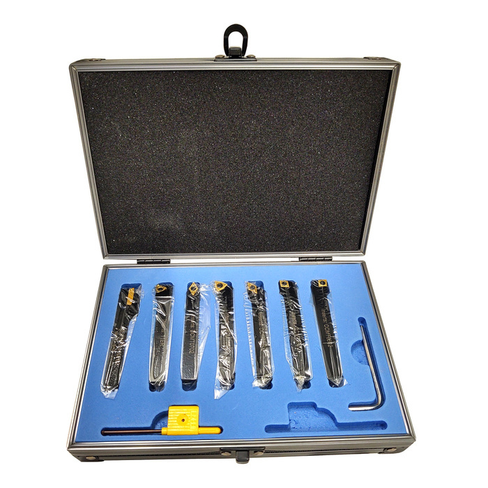 Nowe noże tokarskie 7 elementowe z wymienną płytką. Idealnie nadają się do wielu zastosowań. Każdy z noży w zestawie ma płytkę pokrytą TiN z dodatnim kątem natarcia i wbudowanym łamaczem wiórów. Doskonale nadaję się do ogólnego skrawania.