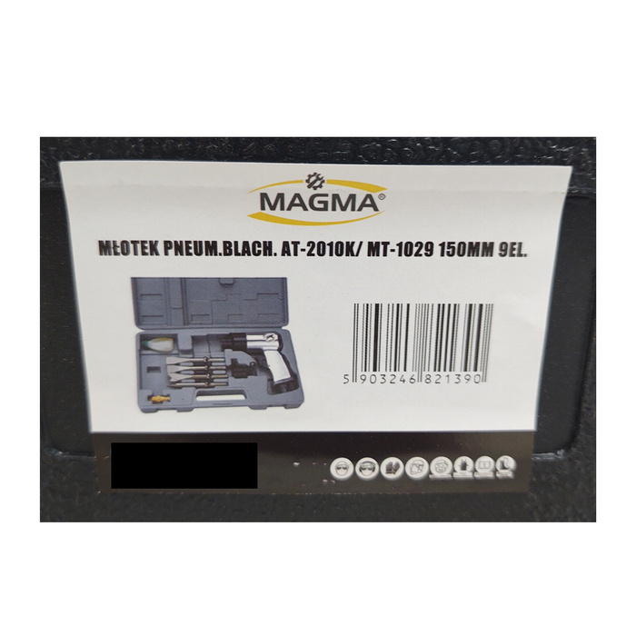 Przecinak blacharski młotek pneumatyczny AT2010K/RSG komplet dłut 4 elementowy AT-010K MT-1029 + Nasadka igłowa młotka pneumatycznego QRC41280 + Ściągacz zestaw ściągaczy drążków kierowniczych 10-009-014 1011D marki Magma.