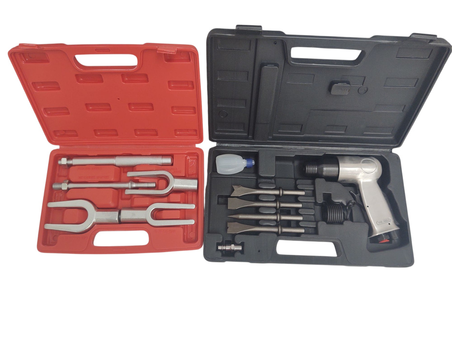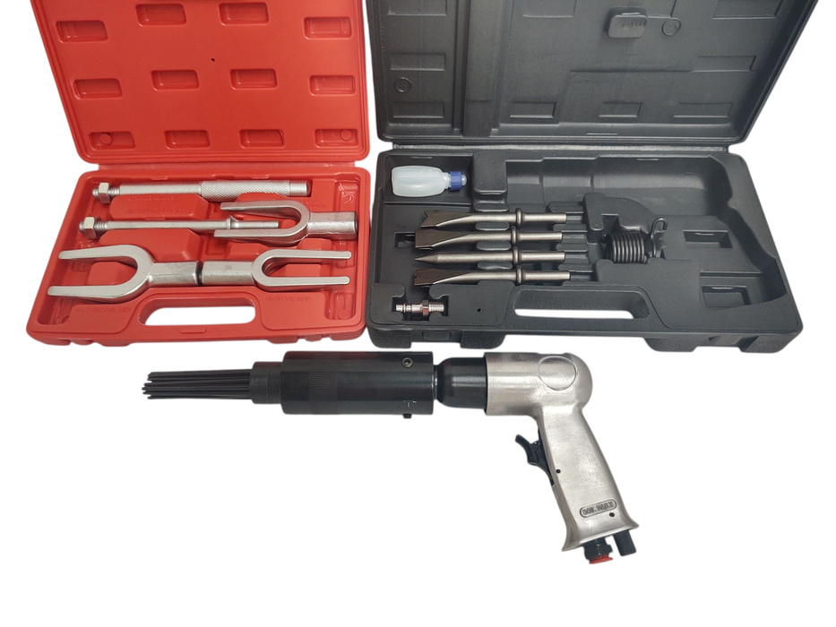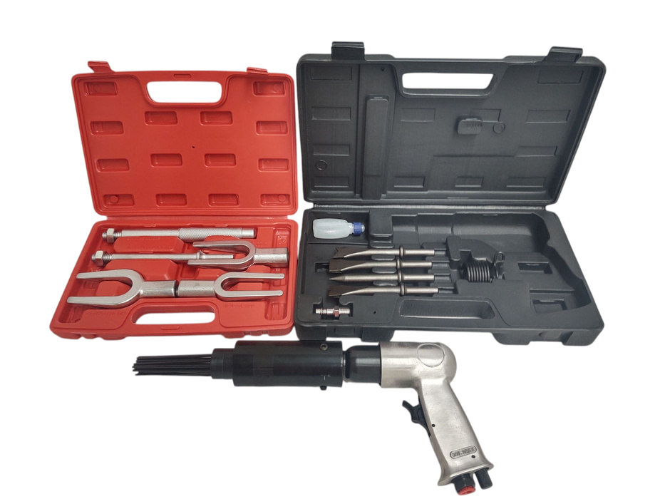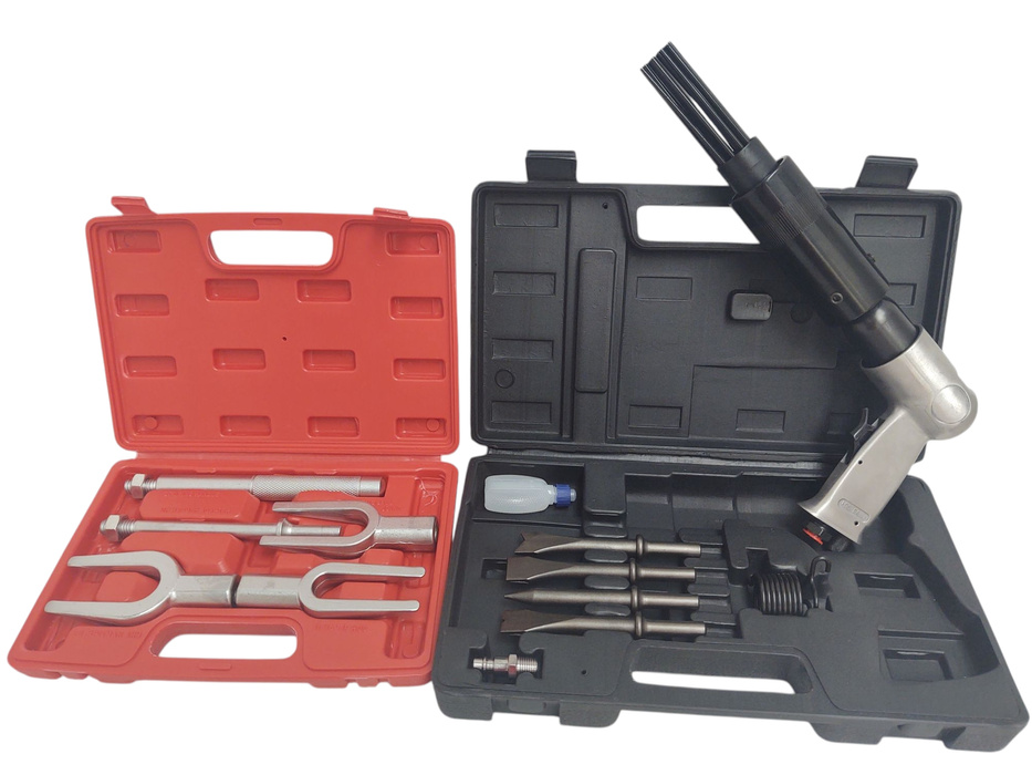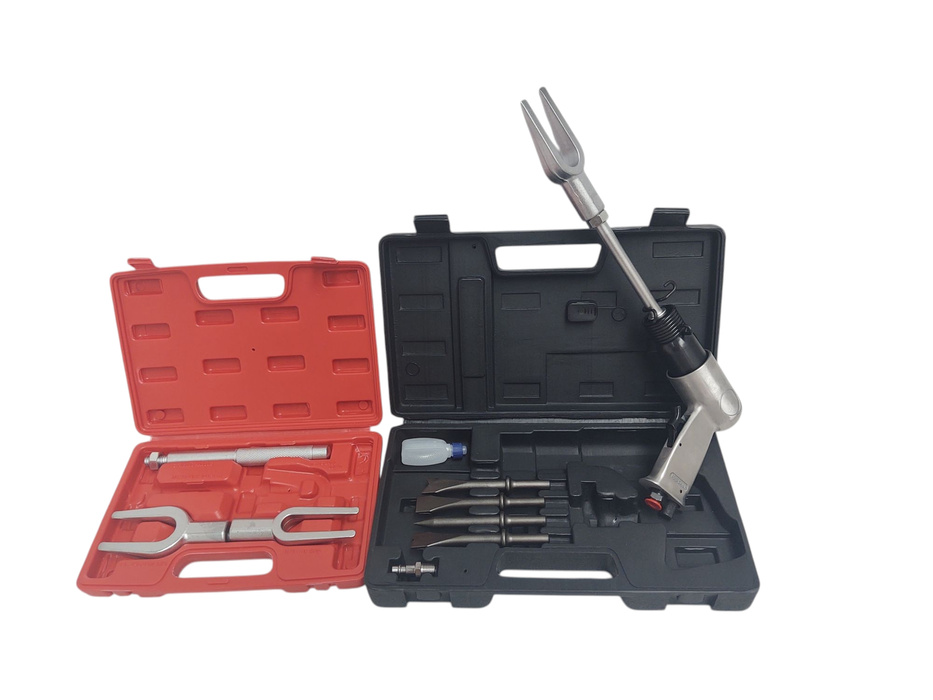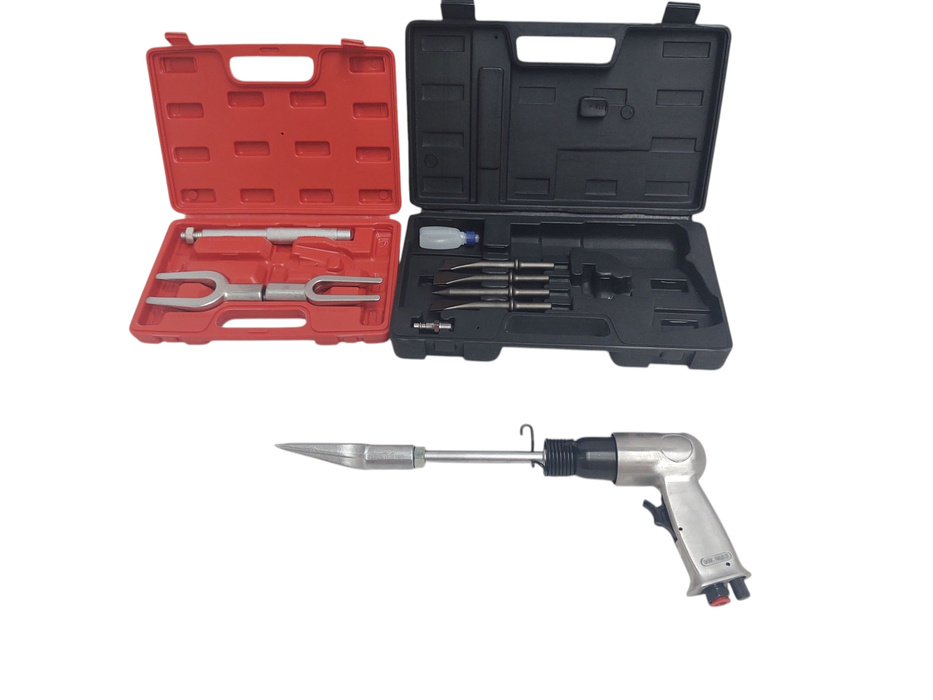 Przecinak blacharski młotek pneumatyczny AT2010K/RSG komplet dłut 4 elementowy AT-010K MT-1029 + Nasadka igłowa młotka pneumatycznego QRC41280 + Ściągacz zestaw ściągaczy drążków kierowniczych 10-009-014 1011D